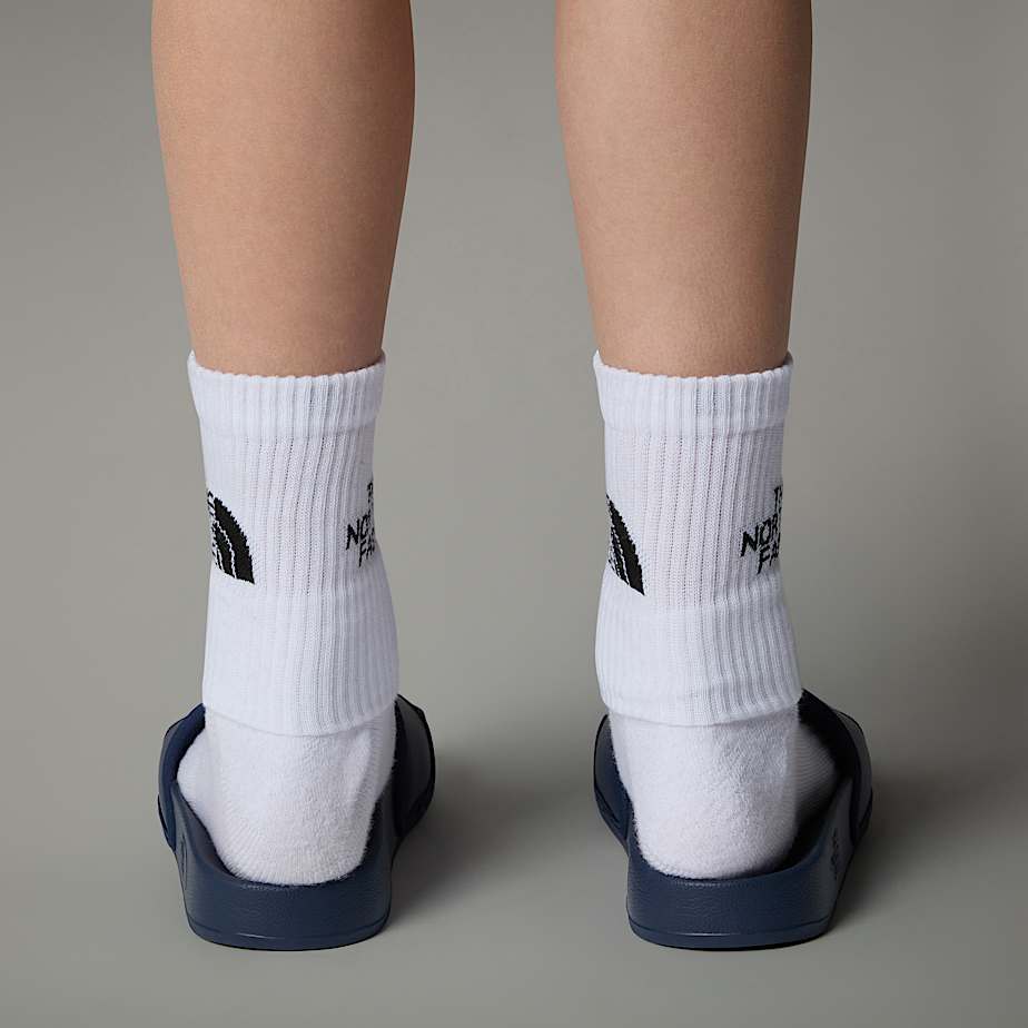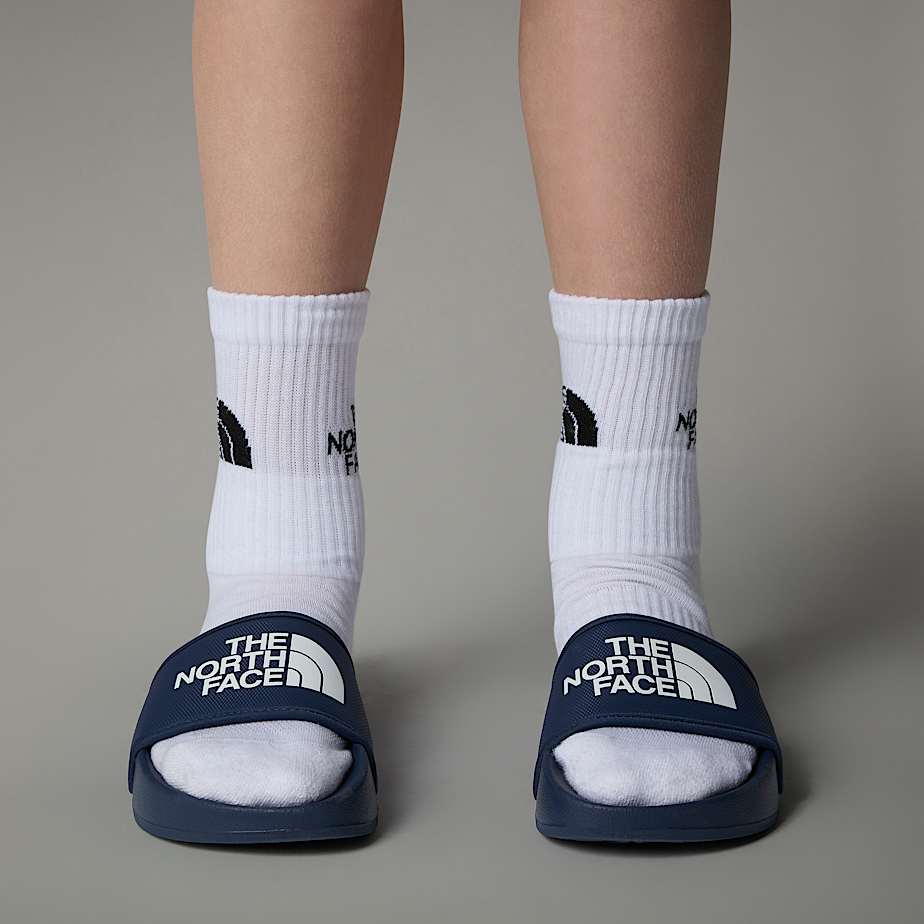 • With or without socks Up to you. Either way, the comfy mesh foam strap won't give young explorers blisters and the textured sole makes the Base Camp Slides III poolside ready.